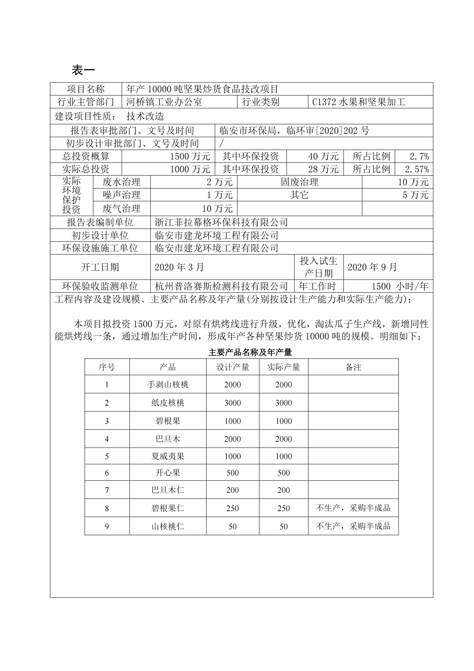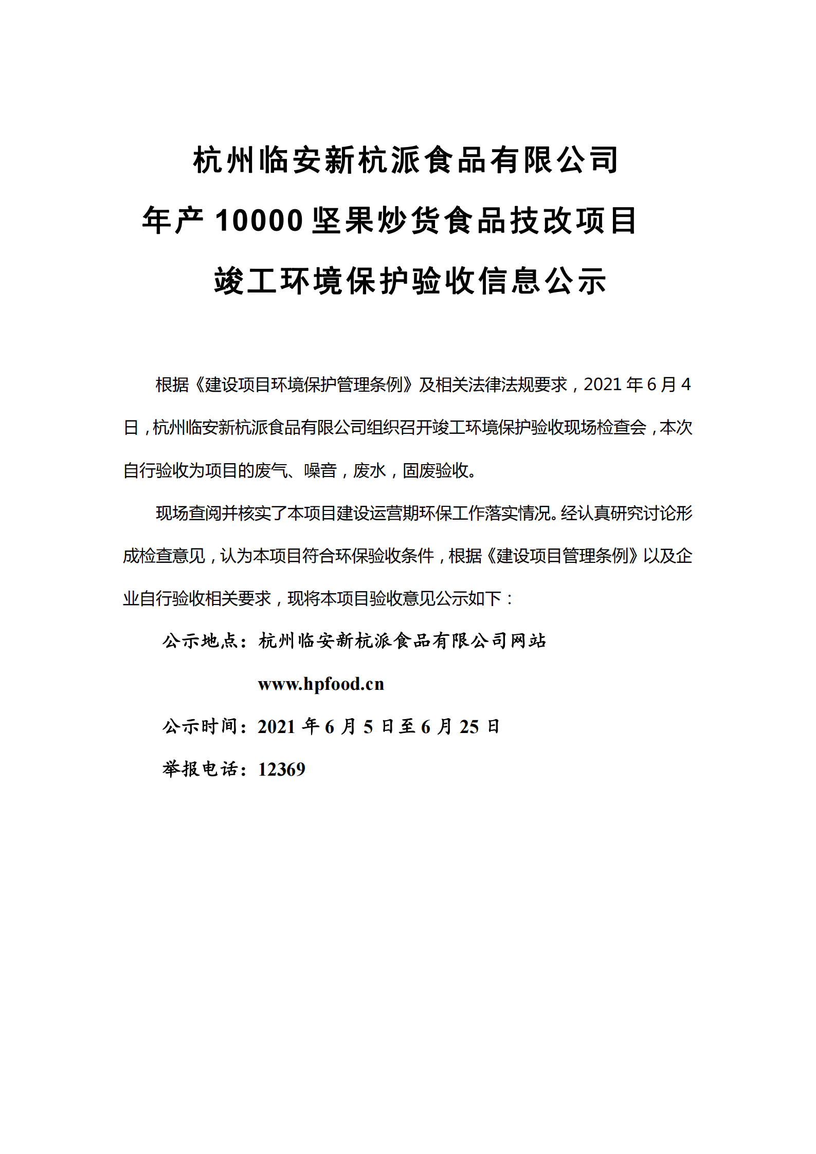 杭州臨安新杭派食品有限公司 年產(chǎn)10000堅(jiān)果炒貨食品技改項(xiàng)目 竣工環(huán)境保護(hù)驗(yàn)收信息公示